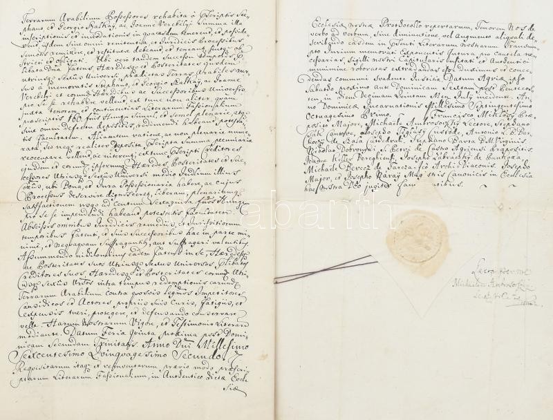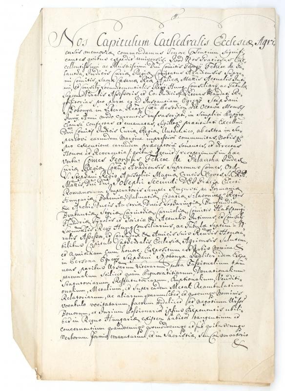 1781 Charter issued by the Chapter of Eger in which they transcribe two charters regarding the possessions held by István Szobonya, issued by Judge Royal György Fekete de Galánta and the Chapter itself. On paper, in Latin with vax seal on it.
