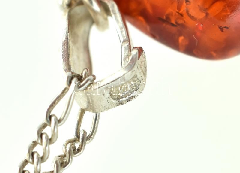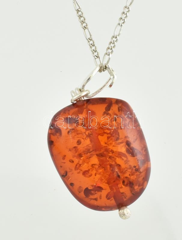 Leírás: Ezüst(Ag) figaro nyaklánc borostyán medállal, jelzett, h: 50 cm, bruttó: 5,58 g