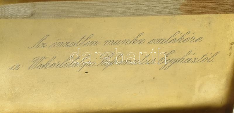 Leírás: Ezüst(Ag) monogramos cigarettatárca, belsejében ajándékozási sorokkal, jelzett, kissé nehezen nyílik, 11,5×8 cm, bruttó: 150,4 g