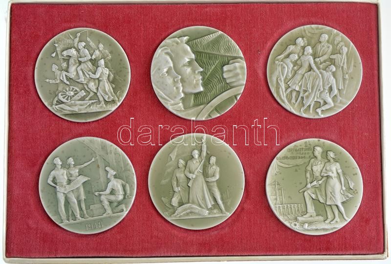 Soviet Union ~1970. 6pcs of varnished Al historically commemorative medallion in case (58mm) + 5pcs of olympic commemorative plaque serie in plastic case (60x37mm) C:UNC,AU
