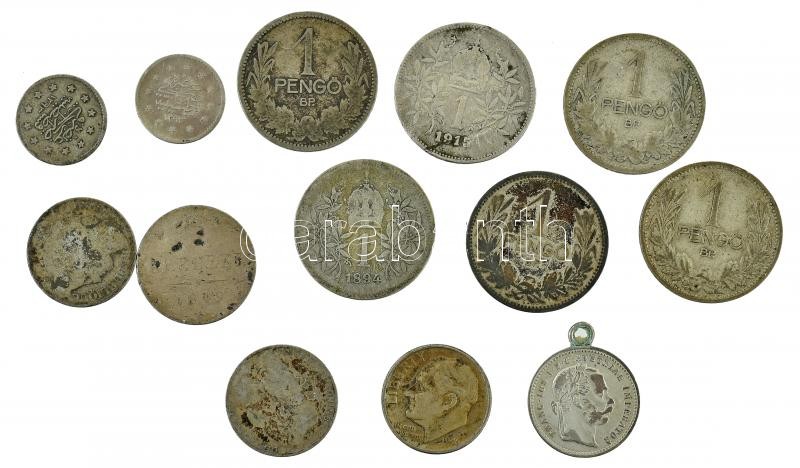 Leírás: 13db vegyes, magyar és külföldi Ag érmetétel gyengébb állapotban T:3-4
