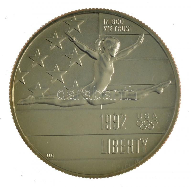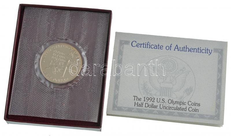 Amerikai Egyesült Államok 1992P 1/2$ Cu-Ni "1992. évi Olimpia" dísztokban, tanúsítvánnyal, az érme lezárt fóliacsomagolásban T:1