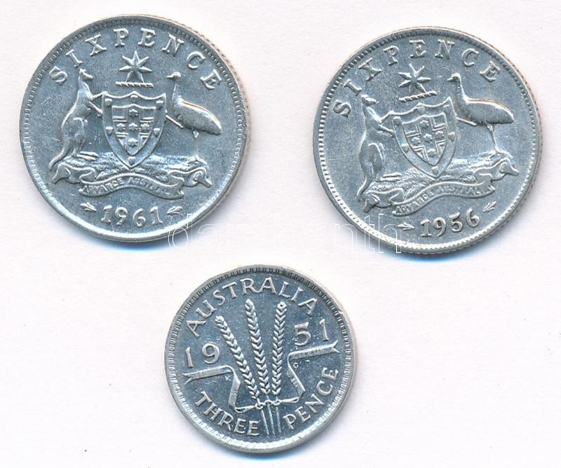 Leírás: Ausztrália 1951. 3p Ag + 1956-1961. 6p Ag (2x) T:2,2-