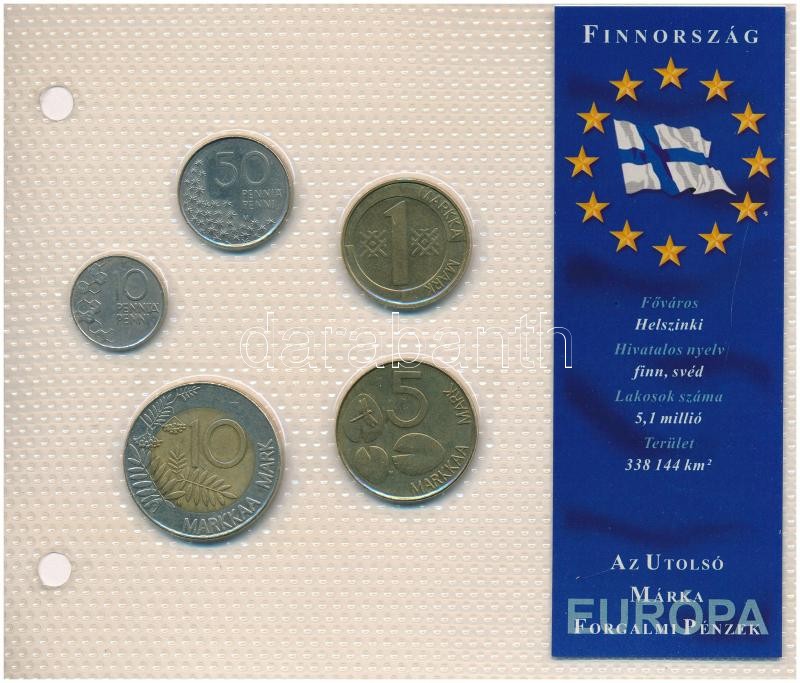 Leírás: Finnország 1991-1994. 10p-10M (5xklf) "Európa utolsó pénzei" vákuumcsomagolt forgalmi szett T:2,2- Finland 1991-1994. 10 Pennia - 10 Markkaa (5xdiff) "Europe's last coins" coin set in vacuum packing C:XF,VF