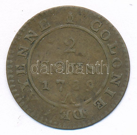 French Guiana / Cay... https://www.darabanth.com/hu/410-Gyorsarveres/410.0/Numizmatika/Kulfoldi-fem-es-ezustpenzek~2000015/Francia-Guyana-Cayenne-1789A-2s-Ag-0208-T2--French-Guiana-Cayenne-1789A-2-Sous-Ag-0208-C~II2550480