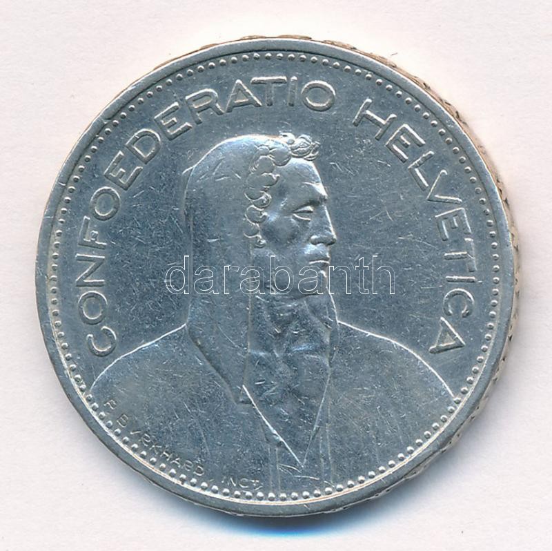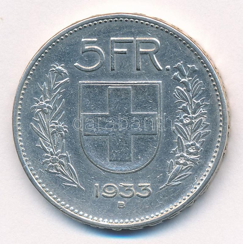 Leírás: Svájc 1933B 5Fr Ag T:2,2- Switzerland 1933B 5 Francs Ag C:XF,VF Krause KM#40