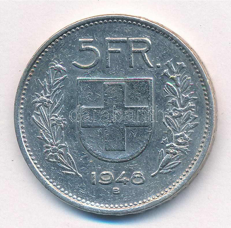 Svájc 1948B 5Fr Ag T:2,2- Switzerland 1948B 5 Francs Ag C:XF,VF Krause... https://www.darabanth.com/hu/410-Gyorsarveres/410.0/Numizmatika/Kulfoldi-fem-es-ezustpenzek~2000015/Svajc-1948B-5Fr-Ag-T2-2-Switzerland-1948B-5-Francs-Ag-CXF-VF-Krause-KM2340~II2550655