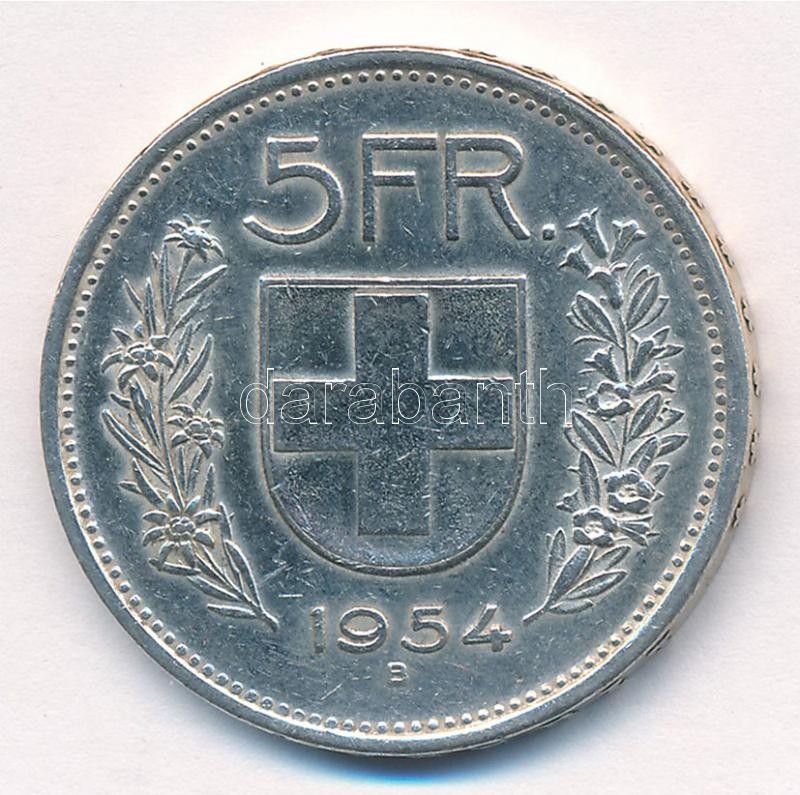 Svájc 1954B 5Fr Ag T:2 Switzerland 1954B 5 Francs Ag C:XF Krause KM#40 https://www.darabanth.com/hu/410-Gyorsarveres/410.0/Numizmatika/Kulfoldi-fem-es-ezustpenzek~2000015/Svajc-1954B-5Fr-Ag-T2-Switzerland-1954B-5-Francs-Ag-CXF-Krause-KM2340~II2550552