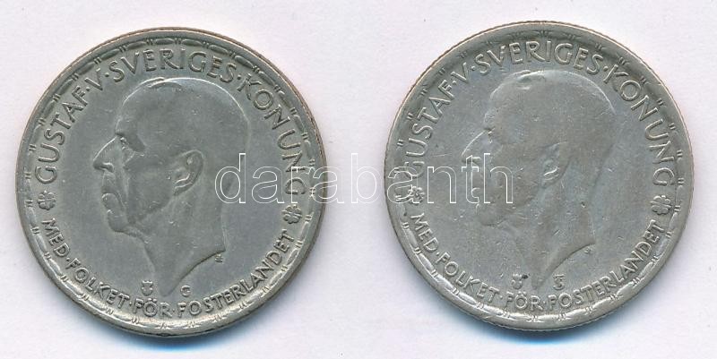 Leírás: Svédország 1944. 1K Ag "V. Gusztáv" + 1946. 1K Ag "V. Gusztáv" T:2,2-