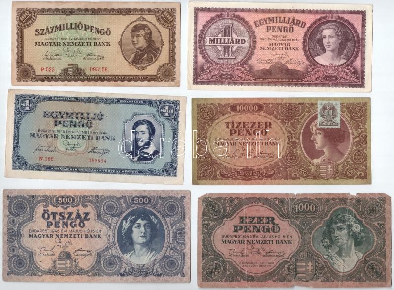 1945-1946. 500P-1.000.000.000P (6xklf) T:II--IV
