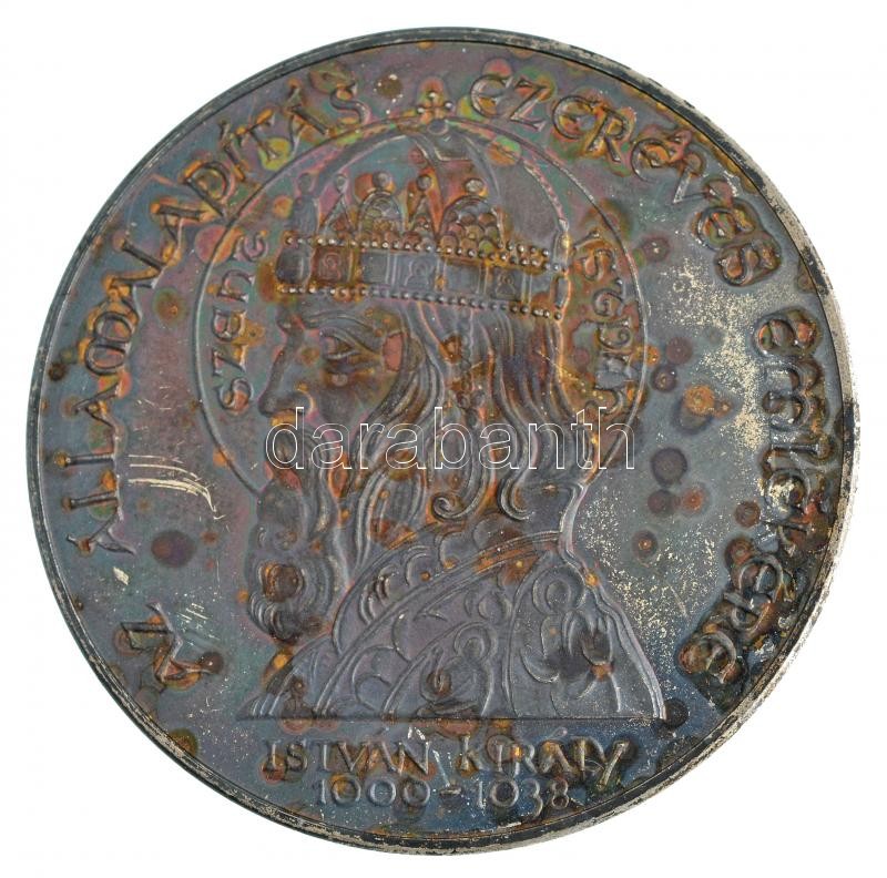 Fritz Mihály (1947-) 2000. "Az Államalapítás Ezeréves Emlékére - István király 1000-1038 / Eco-Real" ezüstözött fém emlékérem dísztokban (42,5mm) T:1- (eredetileg PP) patina