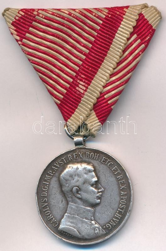 1917. "Károly Ezüst Vitézségi Érem II. osztálya" peremén jel... https://www.darabanth.com/hu/410-Gyorsarveres/410.0/Numizmatika/Militaria~2000018/1917-Karoly-Ezust-Vitezsegi-Erem-II-osztalya-peremen-jelzett-Ag-kituntetes-mellszalagon~II2547370