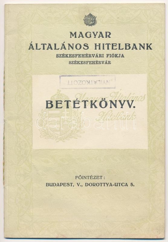 Leírás: 1944. "Magyar Általános Hitelbank" betétkönyve szárazpecséttel