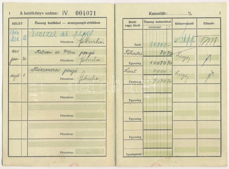 1944. "Magyar Általános Hitelbank" betétkönyve szárazpecsétt... https://www.darabanth.com/hu/410-Gyorsarveres/410.0/Numizmatika/Numizmatikaval-kapcsolatos-egyeb-tetelek~2000003/1944-Magyar-Altalanos-Hitelbank-betetkonyve-szarazpecsettel~II2544613