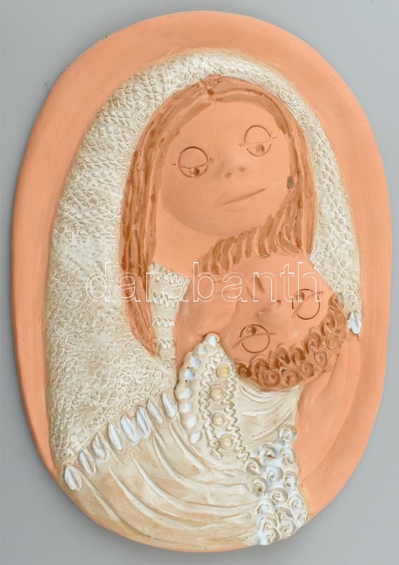 Leírás: Antalfiné Szente Katalin: Anya gyermekével, fali kerámia, hibátlan, jelzett, 30x22cm