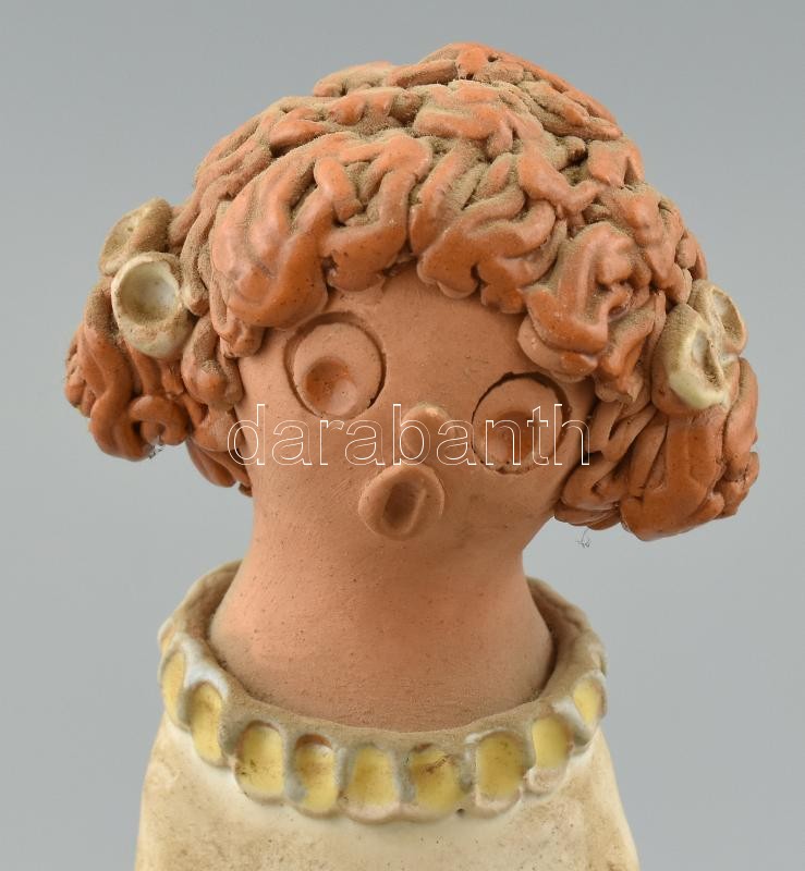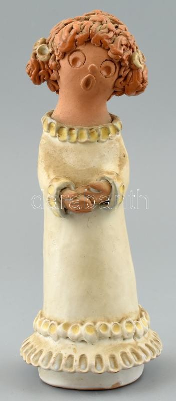 Leírás: Antalfiné Szente Katalin: Éneklő kislány, festett kerámia, hibátlan, jelzett, m:22cm