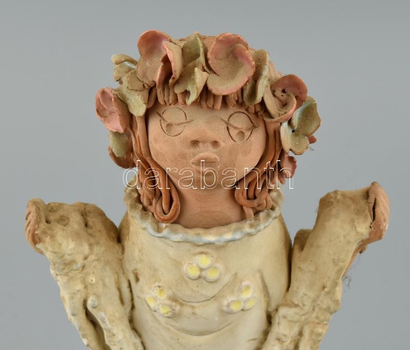 Leírás: Antalfiné Szente Katalin: Koszorúslány, festett kerámia, apró lepattanások, jelzett, m:29cm