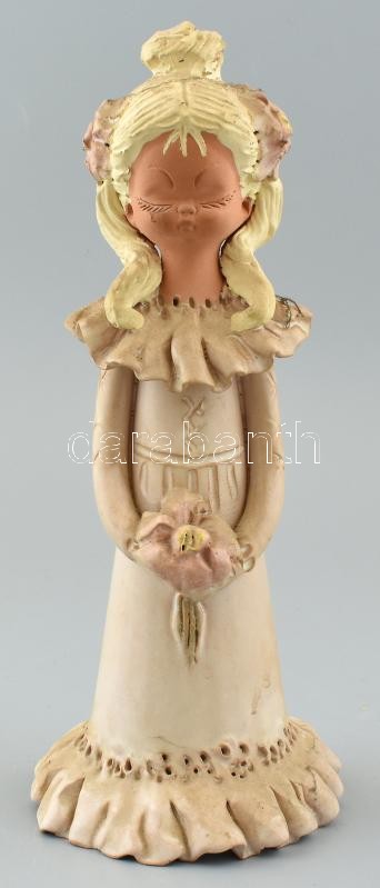 Leírás: Antalfiné Szente Katalin: Szőke kislány, festett kerámia, hibátlan, jelzett, m:27cm