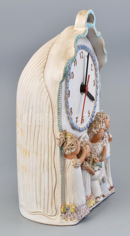 Leírás: Győrbíró Enikő (1932-1999): Figurális óra, festett kerámia, jelzett, hibátlan, m:30cm.