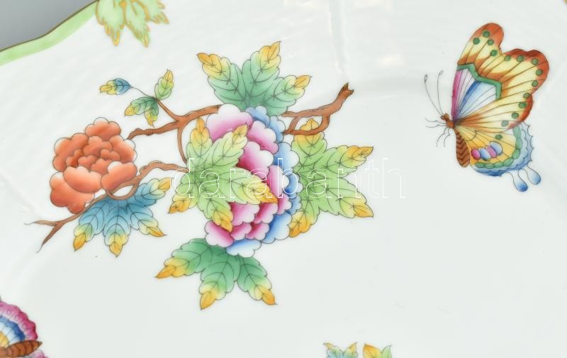 Leírás: Herendi Viktória mintás süteményes tál, kézzel festett, jelzett, kopásnyomokkal, 27x24 cm