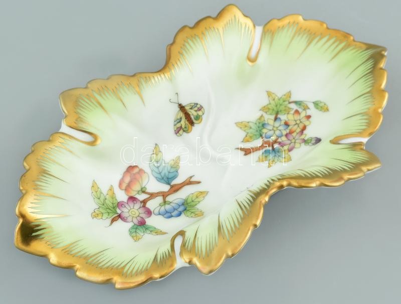 Leírás: Herendi porcelán Viktória mintás leveles tálka, kézzel festett, jelzett, kis kopásnyomokkal, 14,5×8 cm