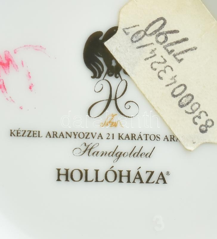 Leírás: Hollóházi Szász Endre által tervezett mintával díszített porcelán váza és fali kép, jelzett, matricás, kopással, m: 20 cm, 9x12cm