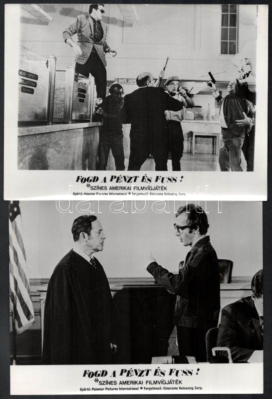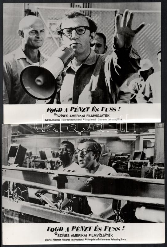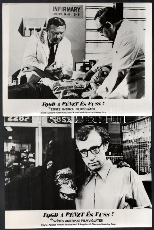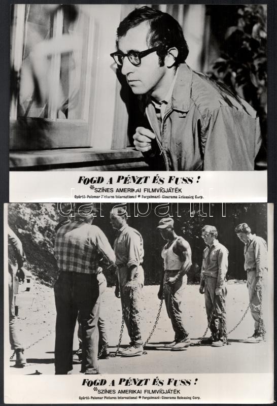 Leírás: 1969 Woody Allen: Fogd a pénzt és fuss! című filmje (írta, rendezte és a főszerepet játssza), 21 db produkciós filmfotó, 18x24 cm