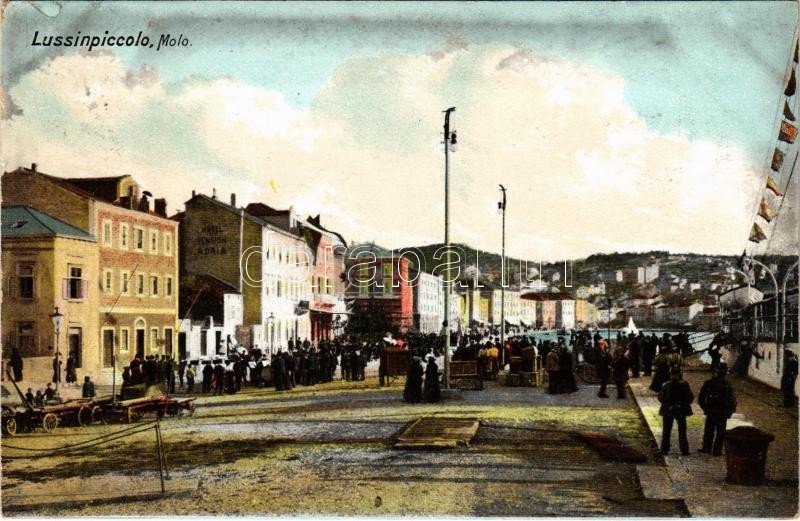Leírás: 1906 Mali Losinj, Lussinpiccolo; Molo, Hotel Pension Adria / port, hotel (EK)