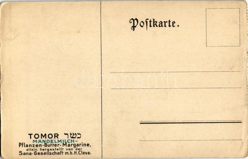 Leírás: Der Segen des Rabbi. Tomor-Kalender der Sana-Gesellschaft litho. Tomor Mandelmilch, Pflanzen, Butter, Margarine s: Prof. M. Oppenheim (EK)