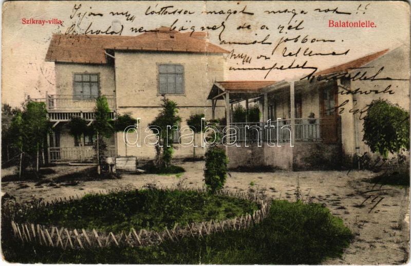 1911 Balatonlelle, Szikray villa. Wollák József kiadása (fa) https://www.darabanth.com/hu/411-Gyorsarveres/411.0/Kepeslapok/Magyarorszag~1000005/1911-Balatonlelle-Szikray-villa-Wollak-Jozsef-kiadasa-fa~II2558971