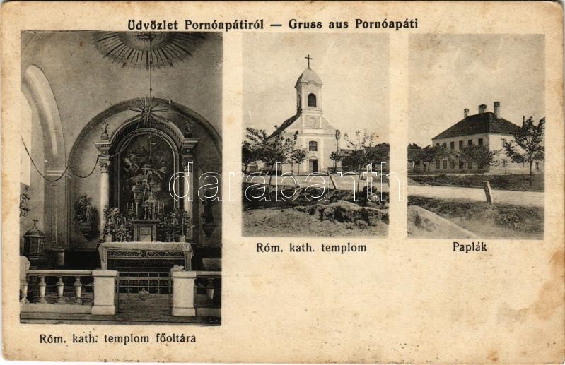 1914 Pornóapáti, Római katolikus templom, belső, főoltár, paplak (Rb) https://www.darabanth.com/hu/411-Gyorsarveres/411.0/Kepeslapok/Magyarorszag~1000005/1914-Pornoapati-Romai-katolikus-templom-belso-fooltar-paplak-Rb~II2559304