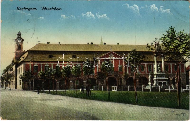 1915 Esztergom, Városháza és Szentháromság szobor (EK) https://www.darabanth.com/hu/411-Gyorsarveres/411.0/Kepeslapok/Magyarorszag~1000005/1915-Esztergom-Varoshaza-es-Szentharomsag-szobor-EK~II2558242