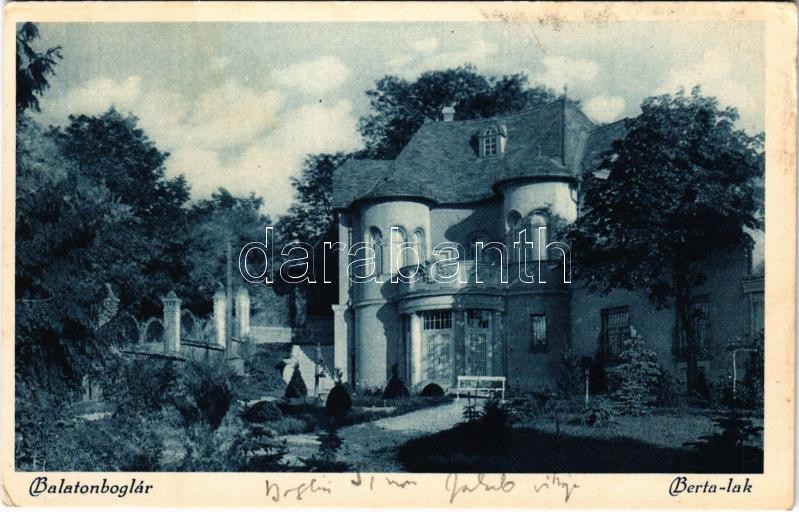 Balatonboglár, Berta lak, villa (EK) https://www.darabanth.com/hu/411-Gyorsarveres/411.0/Kepeslapok/Magyarorszag~1000005/Balatonboglar-Berta-lak-villa-EK~II2555908