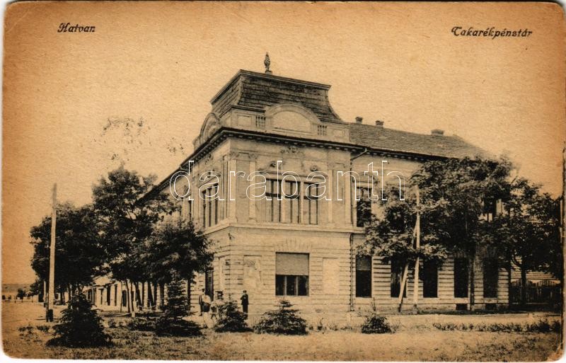 Leírás: Hatvan, Takarékpénztár. Vasúti levelezőlapárusítás 7. 1918. (EK)