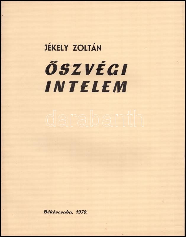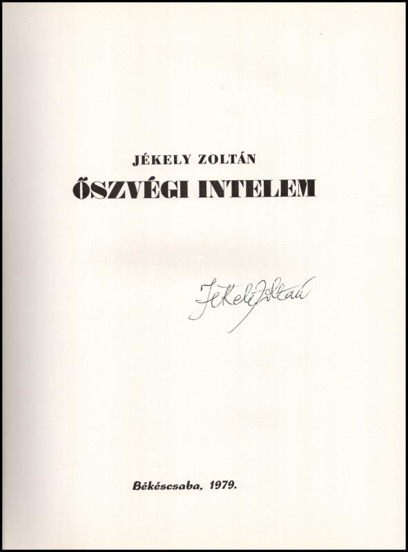 Jékely Zoltán: Őszvégi intelem. Varga Hajdú István illusztrációival. Békéscsaba, 1979., Megyei Könyvtár,12 sztl. lev. Első kiadás. Kiadói papírkötés.