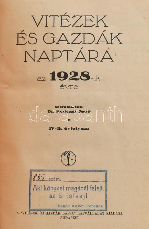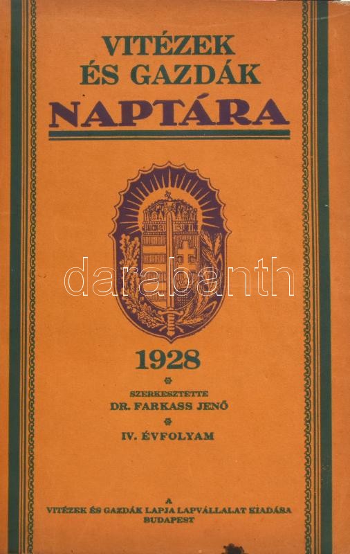 1928-1930 Vitézek és gazdák naptára 1928., 1930. IV. és VI. évf. Szerk.: Farkass Jenő. [Egybekötve.] Bp., Vitézek és Gazdák Lapvállalat. Fekete-fehér fotókkal illusztrált. Átkötött félvászon-kötés, bekötött elülső borítókkal, egy-két lapon ceruzás firkával, az 1930-as borító kissé gyűrött, kissé sérült.