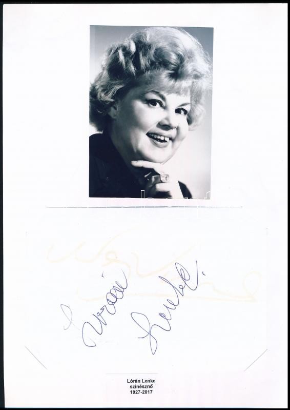 Leírás: Lorán Lenke (1927-2017) Jászai Mari-díjas színésznő aláírása papírlapon