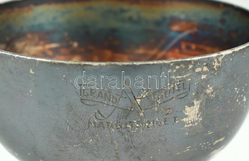 Leírás: Ezüstözött alpakka kehely, Grand Hotel Margitsziget felirattal, kopott, jelzett, m:11cm