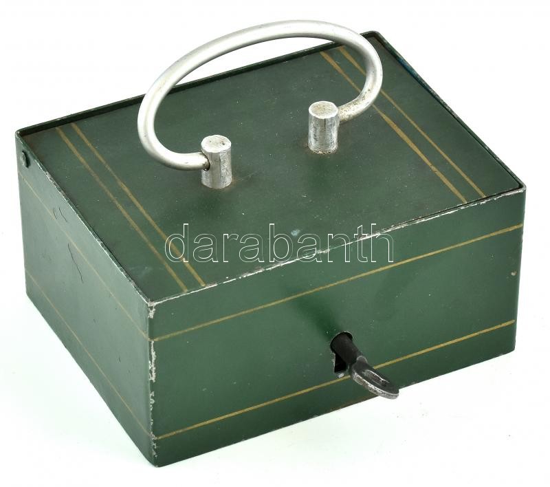 Fém pénzkazetta, kulccsal, kopásnyomokkal https://www.darabanth.com/hu/411-Gyorsarveres/411.0/Mutargy-papirregiseg-egyeb/Bolhapiac~505013/Fem-penzkazetta-kulccsal-kopasnyomokkal~II2555531