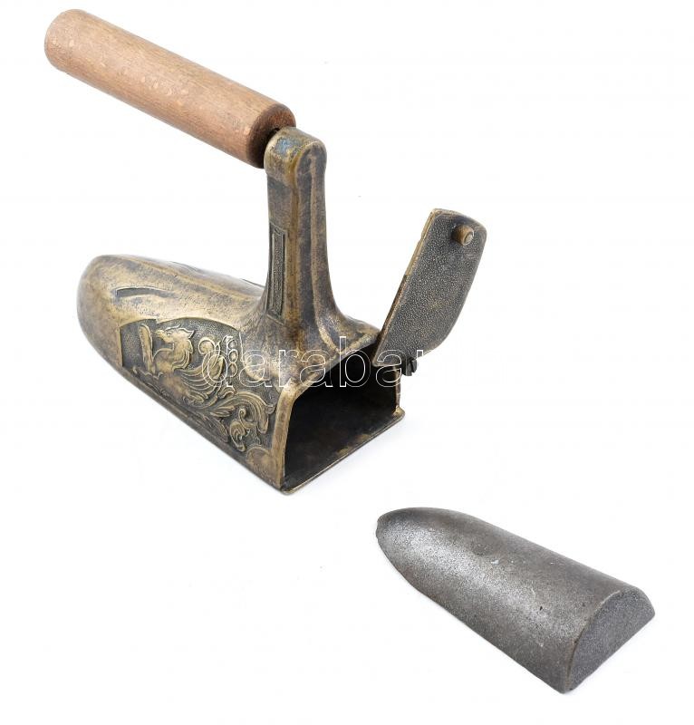 Szecessziós vasaló, melegítő vassal, kopott, jelzés nélkül, bronz, m:1... https://www.darabanth.com/hu/411-Gyorsarveres/411.0/Mutargy-papirregiseg-egyeb/Mutargyak-antikvitas~505008/Szecesszios-vasalo-melegito-vassal-kopott-jelzes-nelkul-bronz-m16-5cm~II2553680