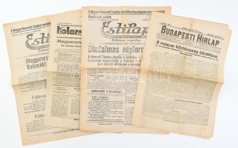1918 Az Őszirózsás forradalomról tudósító 4 db klf újság https://www.darabanth.com/hu/411-Gyorsarveres/411.0/Mutargy-papirregiseg-egyeb/Nyomtatvanyok~1500002/1918-Az-Oszirozsas-forradalomrol-tudosito-4-db-klf-ujsag~II2555166