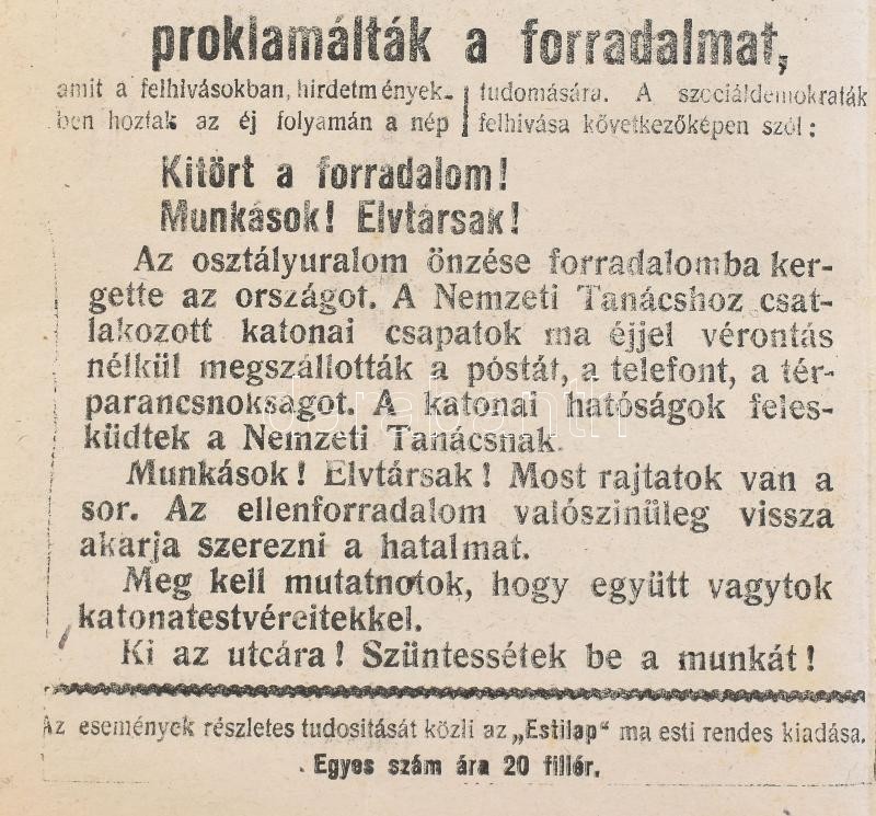 Leírás: 1918 Az Őszirózsás forradalomról tudósító 4 db klf újság