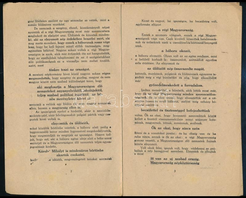 Leírás: 1919 A Népköztársaság és a román nép 7p. Lapkiadó RT. Kolozsvár.