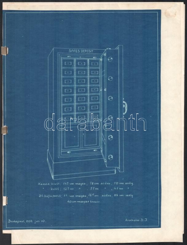 Leírás: 1934 Bp., Arnheim jegyű G/P. minőségű páncélkasszáim leírása, 3p