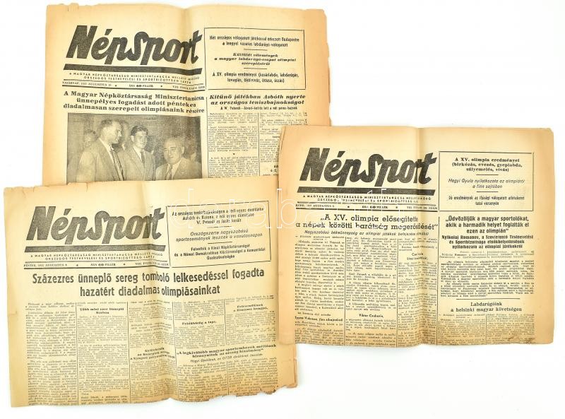 Leírás: 1952 A Népsport olimpiával foglalkozó aug. 5., 8. és 10-i száma, 3 db