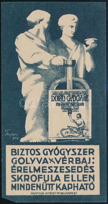 1924 Dobó Gyógyvíz számolócédula, Troján grafikája https://www.darabanth.com/hu/411-Gyorsarveres/411.0/Mutargy-papirregiseg-egyeb/Reklam~505023/1924-Dobo-Gyogyviz-szamolocedula-Trojan-grafikaja~II2557982