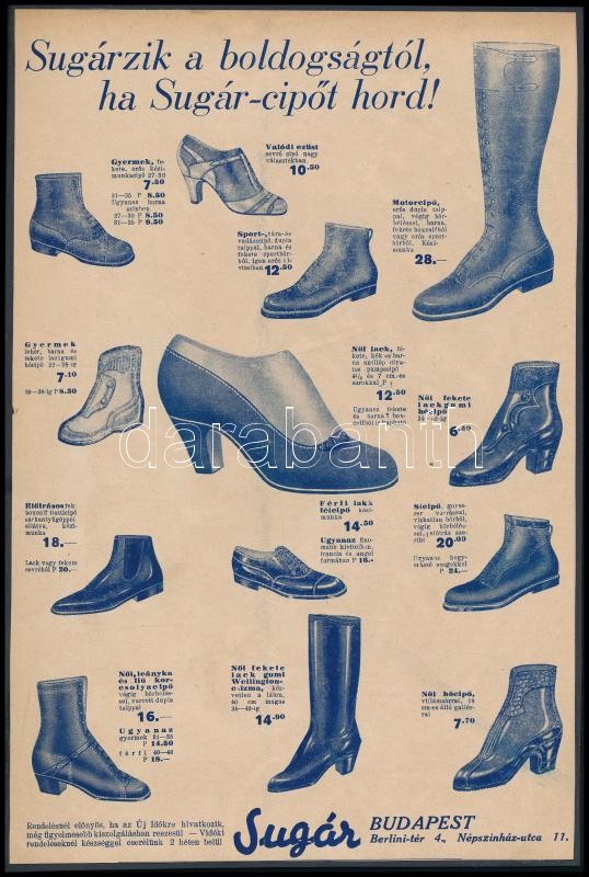cca 1920-1930 "Sugárzik a boldogságtól, ha Sugár-cipőt hord!", Sugár r... https://www.darabanth.com/hu/411-Gyorsarveres/411.0/Mutargy-papirregiseg-egyeb/Reklam~505023/cca-1920-1930-Sugarzik-a-boldogsagtol-ha-Sugar-cipot-hord-Sugar-reklam-nyomtatvany-kar~II2556849