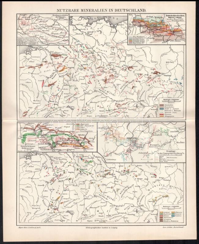 Leírás: Németország, földrajzi, bányászati és ipari térképek 10 darabos vegyes világtérkép gyűjtemény cca 1900. 31x25 cm