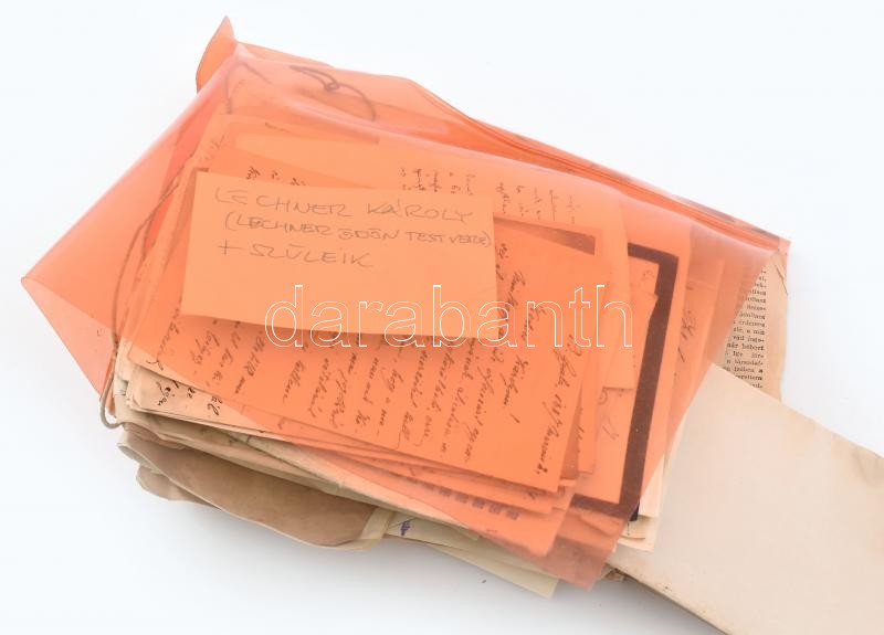 cca 1850-1940 A kismarty Lechner család irathagyatéka. Lechner Ödön építész felmenői, testvéreivel kapcsolatos anyagok. Lechner Károly, Jenő, Lóránd, Gyula, Lechner Nep. János, Bolda, és még számos más Lechner autográf levelei, végrendeleteik, vagyonuk leltára, sok fotóval, stb. Nagyon érdekes anyag.