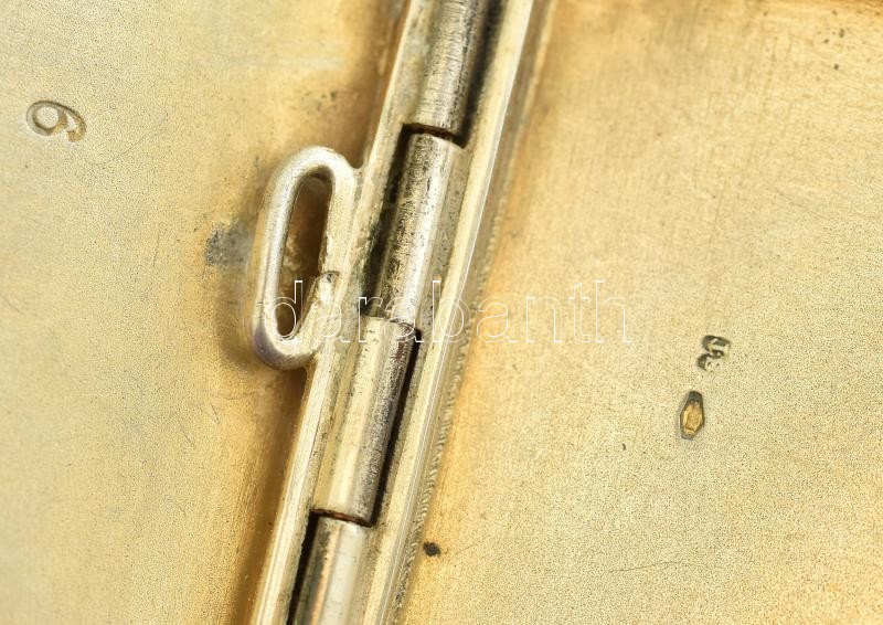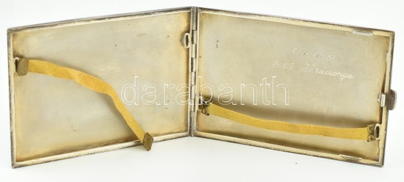 Leírás: Ezüst (Ag) cigaretta tárca. Zománc díszítéssel (kissé kopott) 175g. 11,5x8 cm